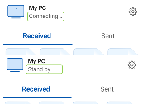 携帯電話/タブレットでインテル® Unison™アプリを開くと、PC に [接続中] または [スタンバイ] と表示されます。