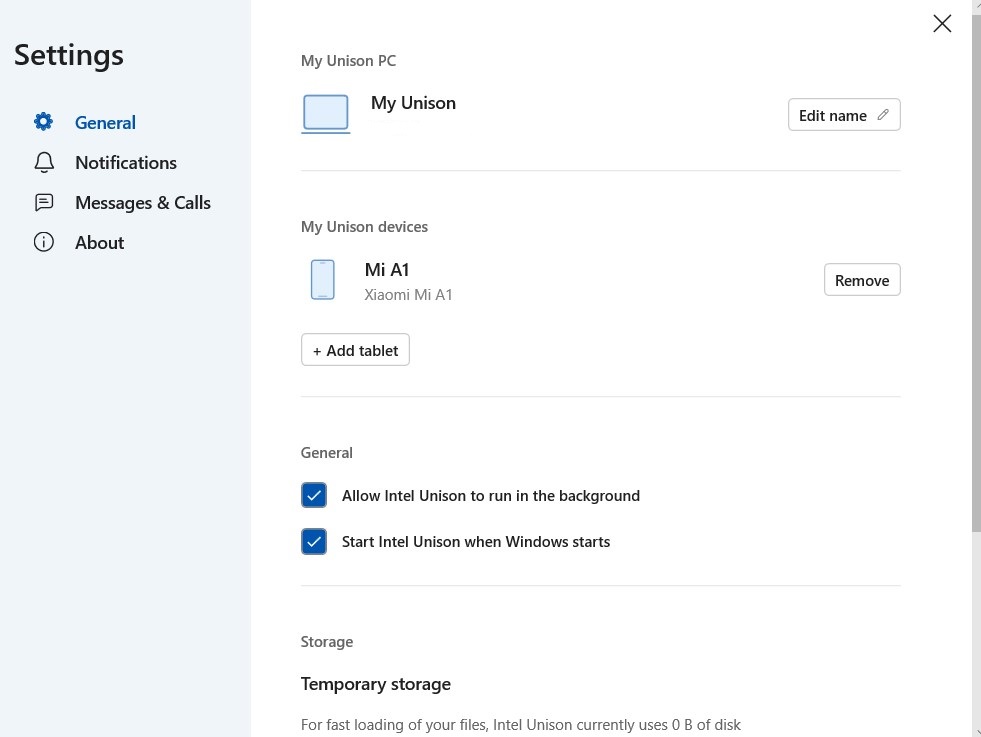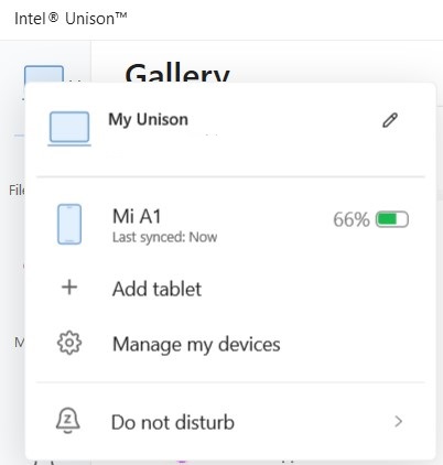 クリック インテル® Unison™ PC アプリ ハブまたは [マイ コンピューター名] を選択します。